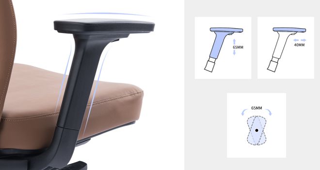 Reposabrazos ajustable multidimensional 4D, bloqueo de altura multiposición, cumple con las distintas posiciones de soporte para brazos para sentarse, se mueve libremente
