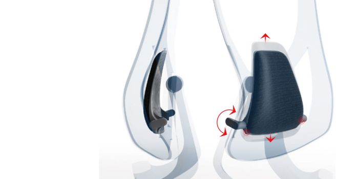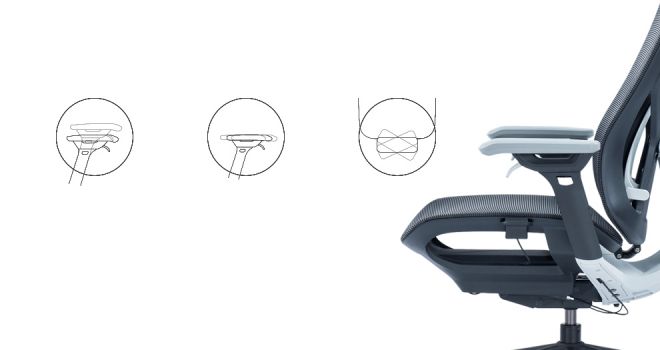 El diseño está inspirado en los planeadores, utilizando líneas estilizadas para delinear la apariencia, buscando un equilibrio entre estructura mecánica y estética geométrica. El diseño gira en torno al concepto de "respuesta autónoma". La inclinación del respaldo hace que el asiento se deslice automáticamente hacia adelante, moviendo el centro de gravedad del asiento hacia adelante y resolviendo el peligro oculto de que la silla gire hacia atrás durante las pausas para el almuerzo. El mecanismo de ajuste controlado por cable ubicado en el reposabrazos permite a los usuarios ajustar rápida y fácilmente la silla a un estado adecuado.