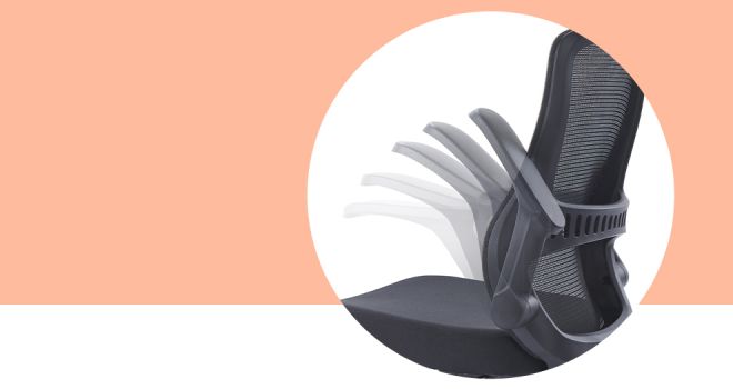 Reposabrazos volteados hacia arriba para facilitar el movimiento y mejor utilización del espacio.