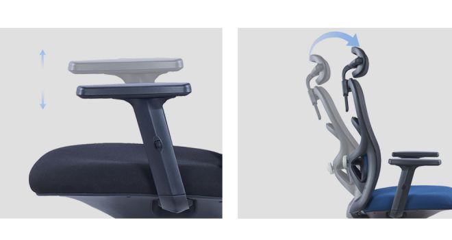 Reposabrazos de PU ajustables en altura, mecanismo de bloqueo único para inclinación separada