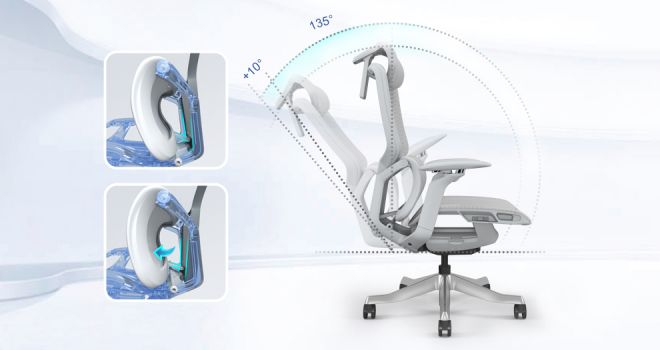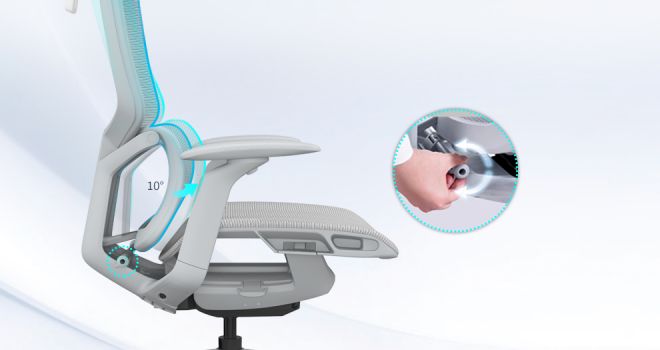 Encendido: 10° de ángulo activo para un soporte oscilante preciso Apagar: bloquea el ángulo y restaura una postura sentada erguida