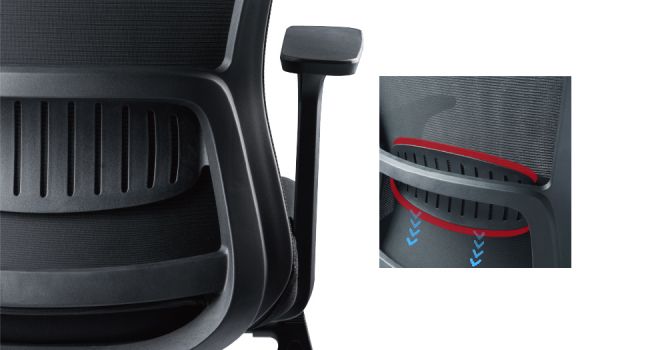 El diseño de ampliación central se adapta mejor a la región lumbar humana, permitiendo que el asiento se adapte a los cambios de posición del cuerpo humano.