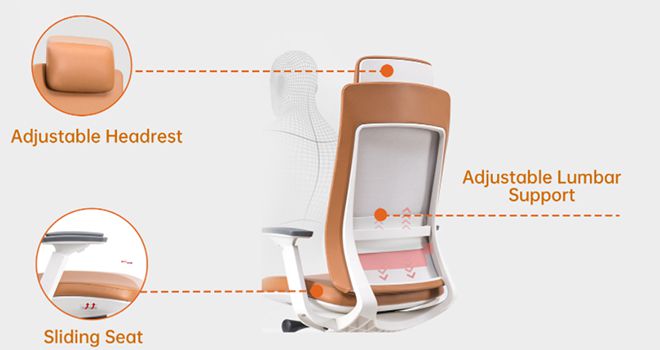 Reposacabezas ajustable Soporte lumbar ajustable Asiento deslizante